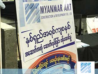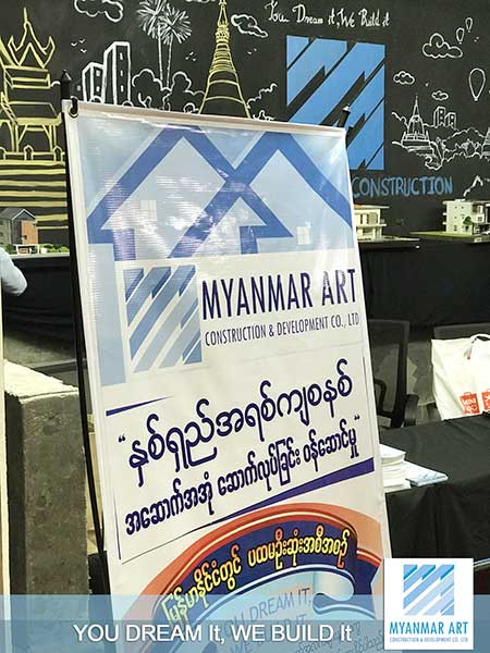 MYANMAR ART Construction & Development Co.,Ltd ၏ ဆောက်လုပ်ရေးဝန်ဆောင်မှု၊ နှစ်ရှည်အရစ်ကျစနစ်ဖြင့် အဆောက်အအုံဆောက်လုပ်ခြင်း (Construction Loan) ဝန်ဆောင်မှုတို့ကို iMyanmarHouse.com မှ တပ်မတော်ခန်းမတွင် ကြီးမှူးကျင်းပခဲ့သည့် (၁၁)ကြိမ်မြောက် မြန်မာနိုင်ငံ၏ အကြီးဆုံးအိမ်ခြံမြေအရောင်းပြပွဲကြီးအတွင်း ပြခန်းကျယ်ဖြင့် ဝင်ရောက်ပြသခဲ့ပါသည်။