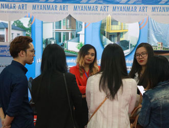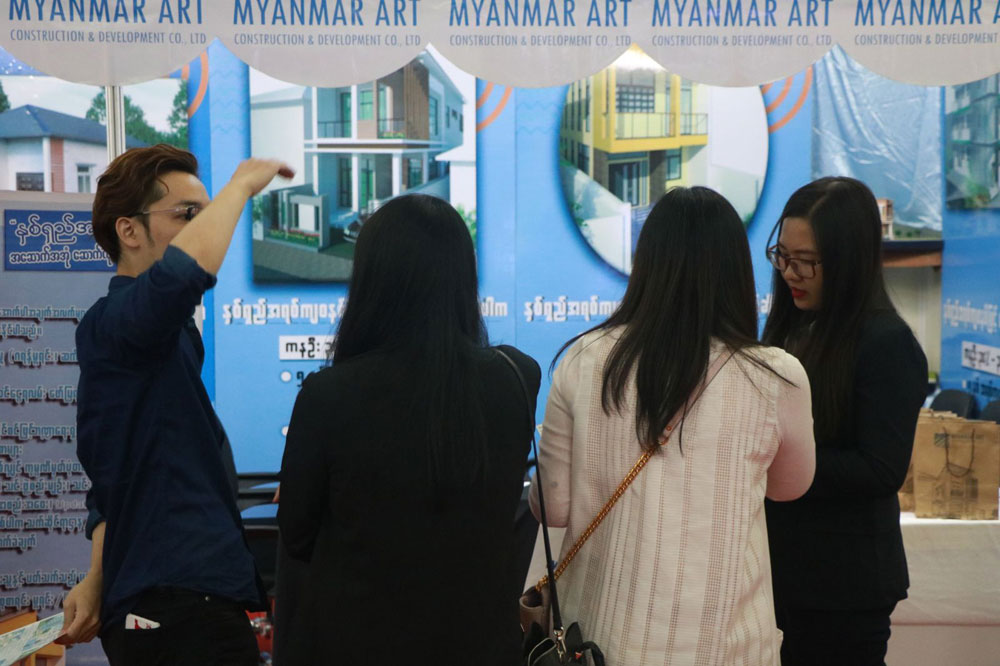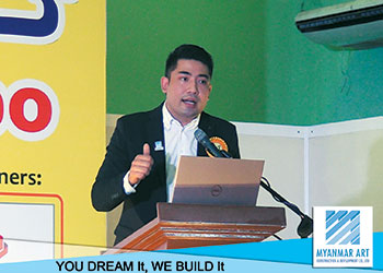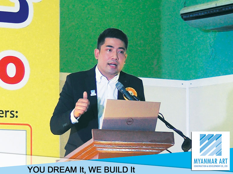 MYANMAR ART Construction & Development Co.,Ltd ၏ Managing Director ဦးကျော်စွာဟိန်းမှ MYANMAR ART၏ ပြည်တွင်းတွင်း ပထမဆုံး ဆန်းသစ်တီထွင်ခဲ့သည့် နှစ်ရှည်အရစ်ကျစနစ်ဖြင့် အဆောက်အအုံဆောက်လုပ်ခြင်း (Construction Loan) ဝန်ဆောင်မှုကို မိတ်ဆက်ပြောကြားခဲ့သည့်အပြင် ဆောက်လုပ်ရေးဆိုင်ရာဗဟုသုတများကို ပြပွဲသို့ လာရောက်လေ့လာသူများအား ဟောပြောခဲ့ပါသည်။